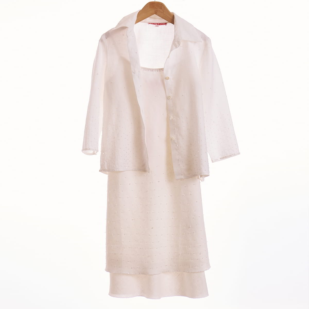 Linen dress and jacket set with embroidered sequin rhinestones by Nadia Video