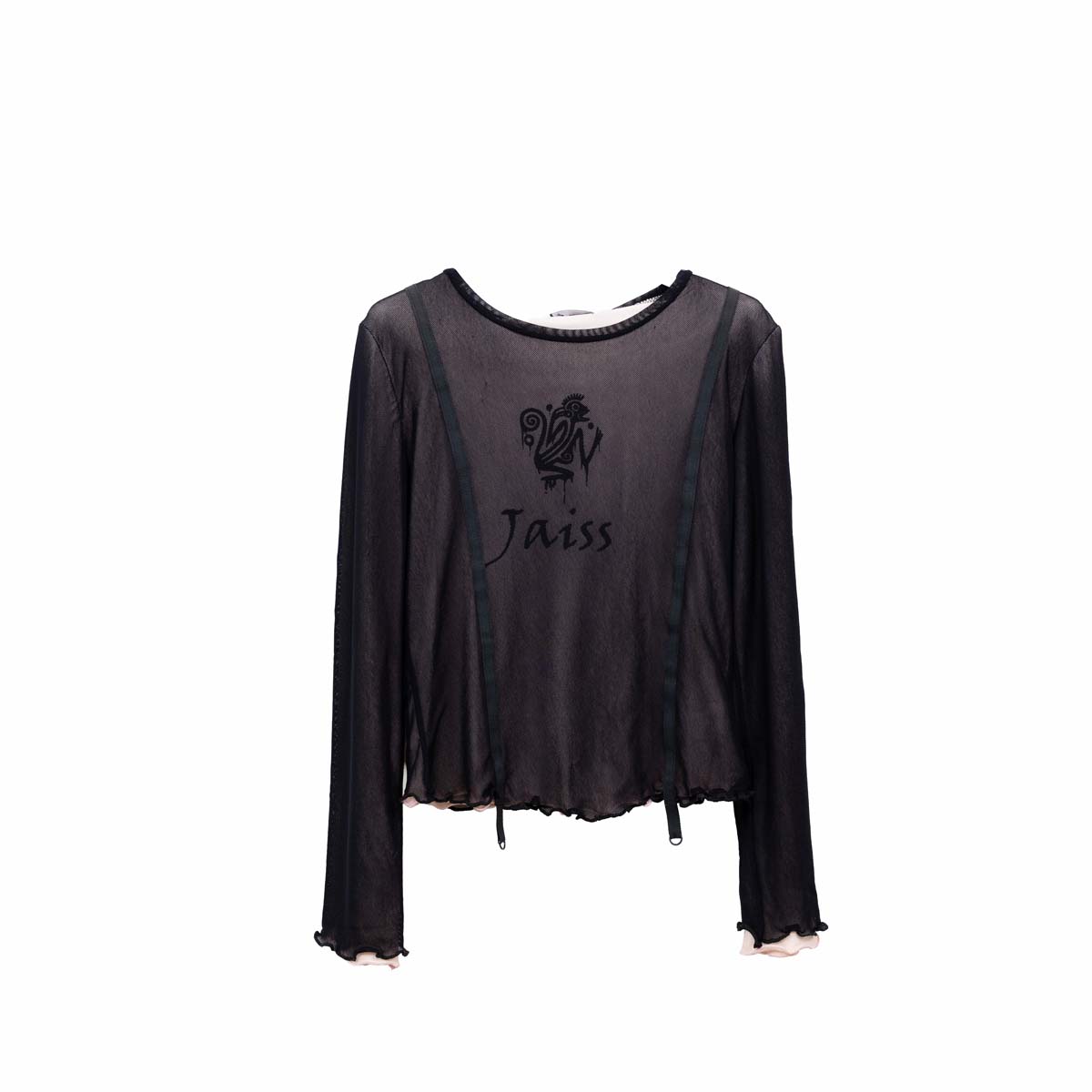 Μπλούζα διπλή, το εσωτερικό σε ροζ πολύ απαλό με μαύρο δίχτυ από επάνω