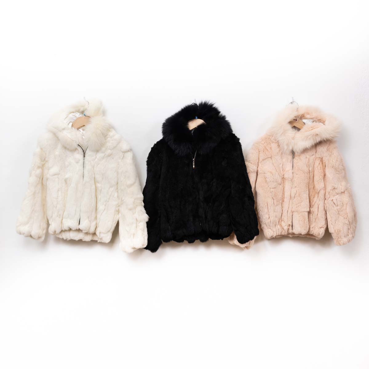 Μπουφάν γούνα κουνελιού σε 3 χρώμματα μαύρο, λευκό πάγου και απαλό ροζ