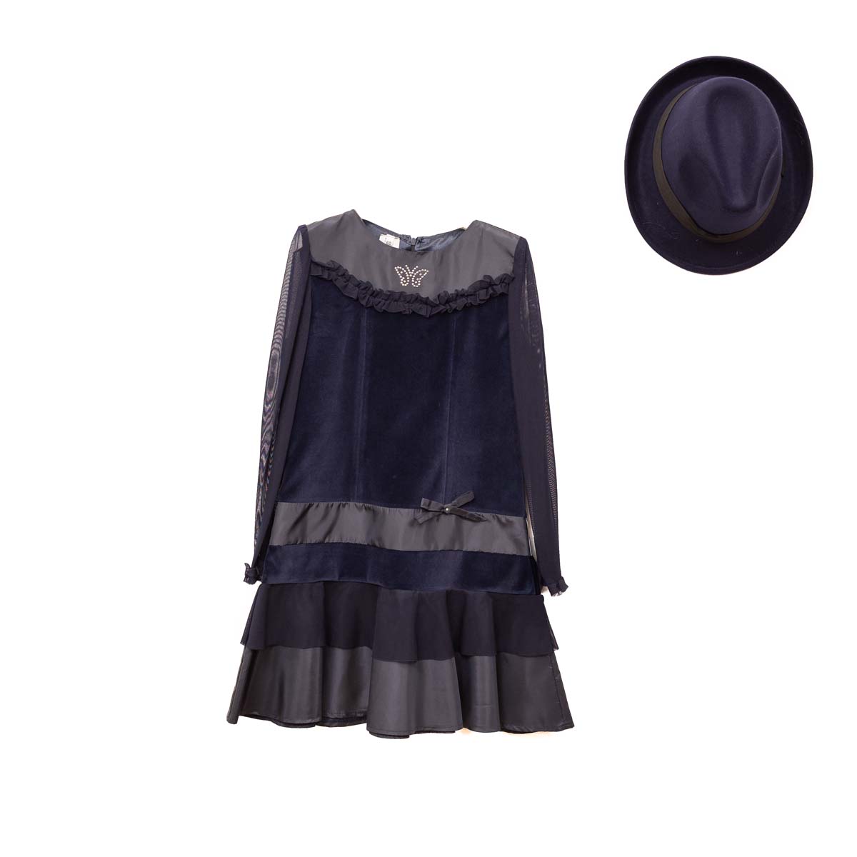 Φόρεμα ταφτάς και βελούδο μπλε για ιδιαίτερες εμφανίσεις